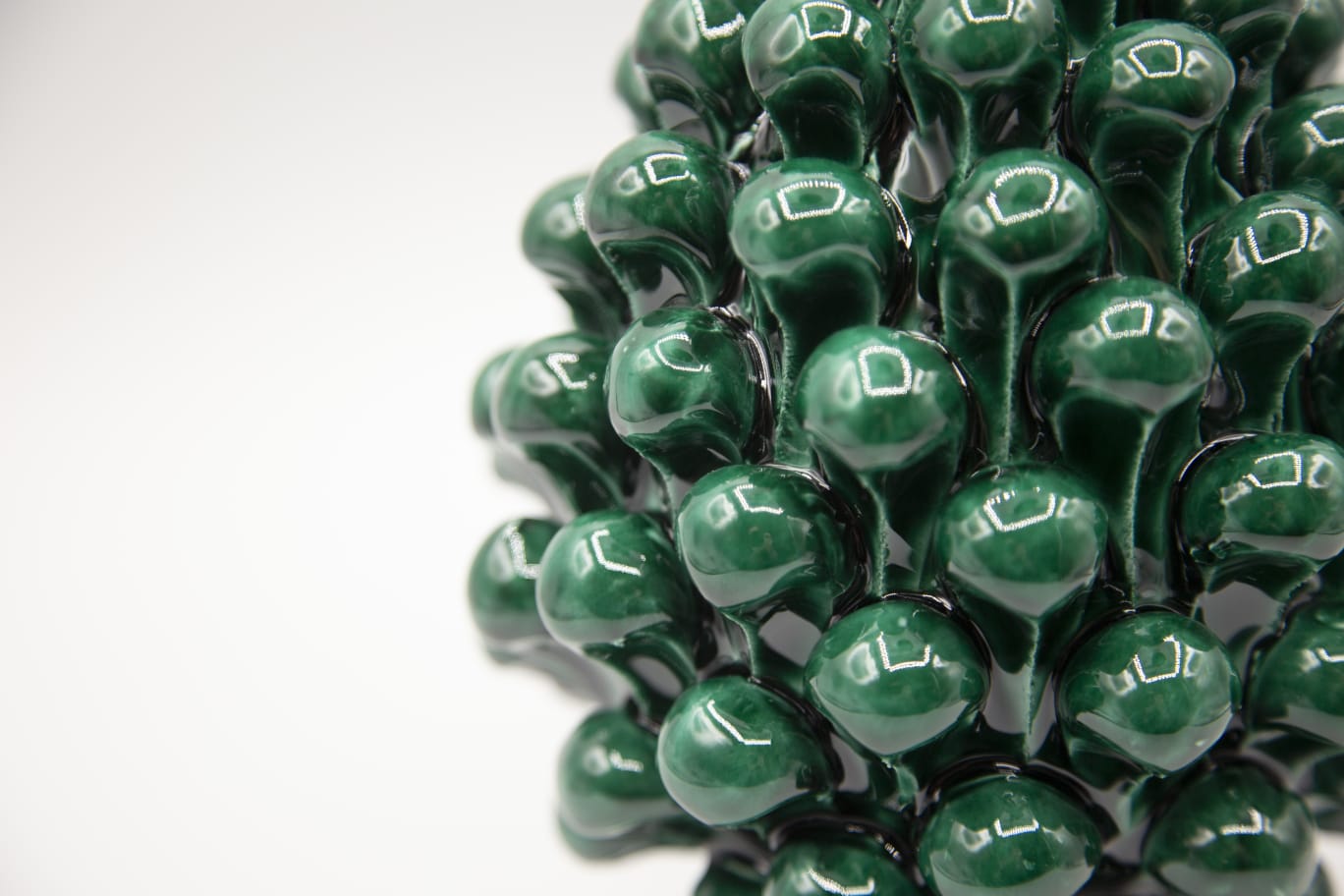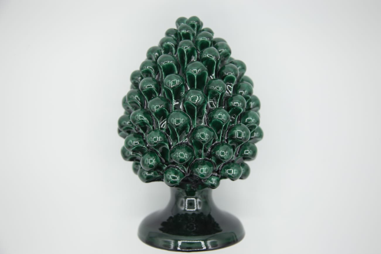 Pigna interamente fatta a mano dove il colore verde rappresenta uno delle tonalita’ dominanti della ceramica di caltagirone , con questo effetto si vuole ricreare il giusto equilibrio tra tradizione e modernita’